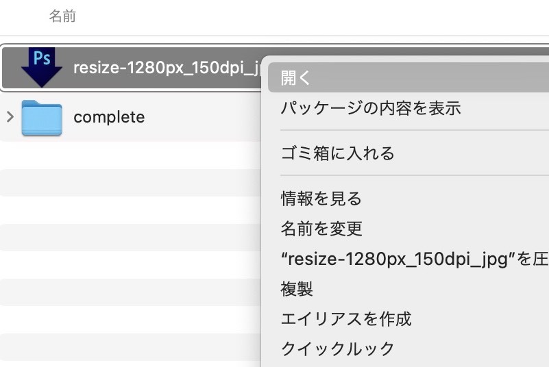 Photoshopで作成したドロップレットに画像ファイルをドラッグすると、