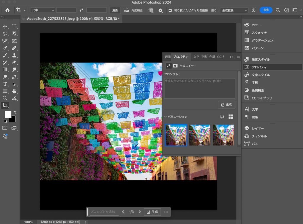こちらが完成した画像です。AI生成拡張機能を活用することでこれまで加工にかかっていた時間がかなり短縮できそうですね。