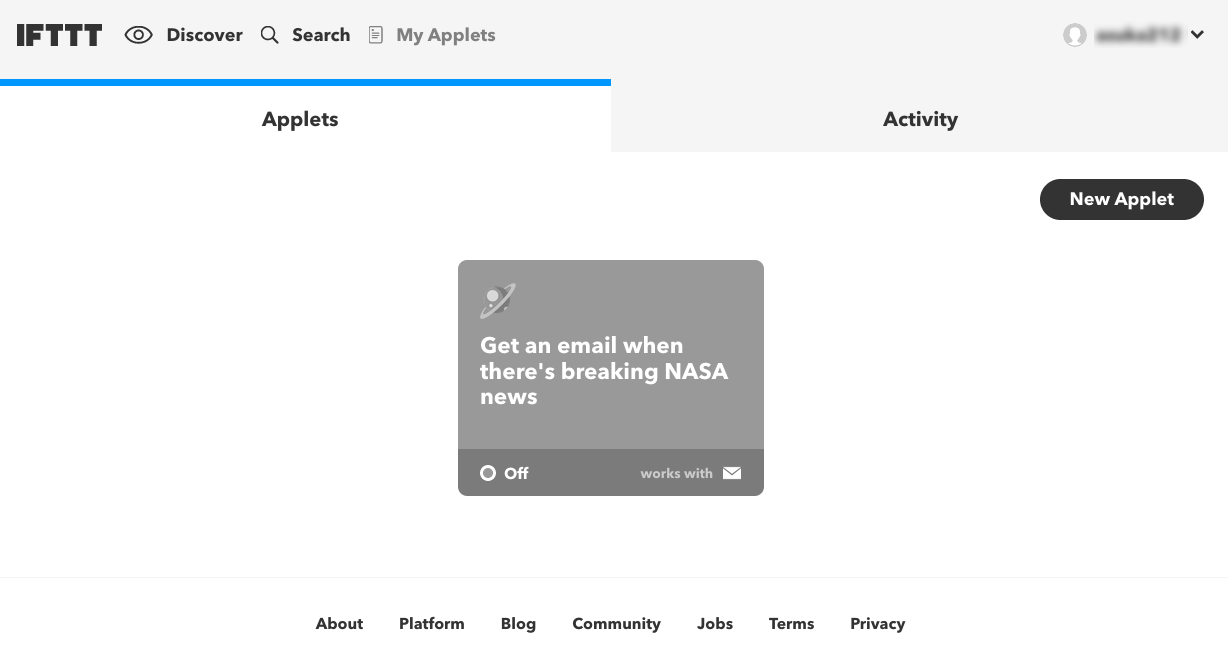 ログイン後、設定画面が表示されます。「New Applet」をクリックします。以前は「レシピ」と呼ばれていたようですが現在の呼び名は「Applet」に変更されているみたいです。