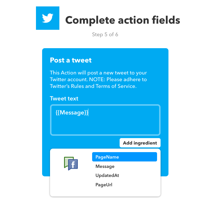 投稿に含めたい内容を追加できます。「Add ingredient」をクリックして、追加します。