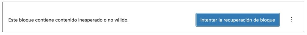 ‘Este bloque contiene contenido inesperado o inválido’. y error.