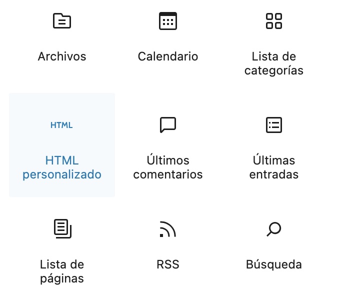 Si selecciona «HTML personalizado» para el bloque y escribe la clase en línea, puede configurarlo del mismo modo que Parte 1.