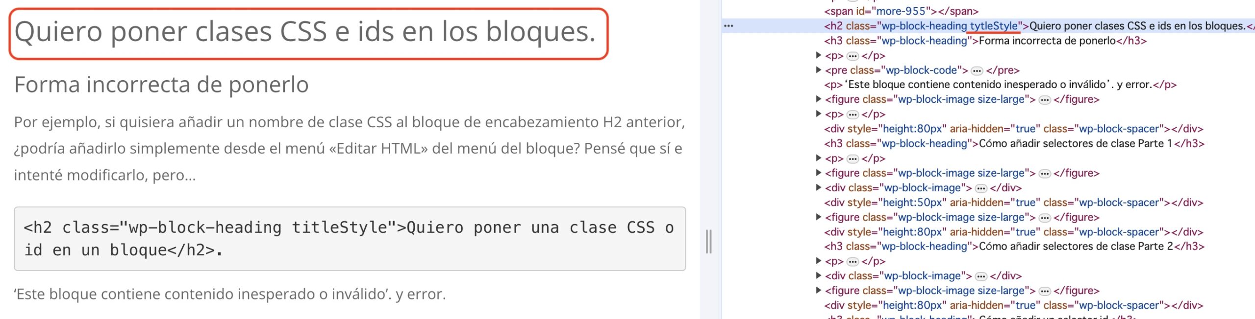 <h2 class="wp-block-heading titleStyle">Quiero poner una clase CSS o id en un bloque</h2>
